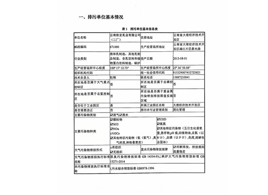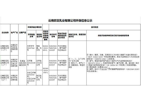 云南歐亞乳業有限公司子公司牧場環(huán)保信息公示
